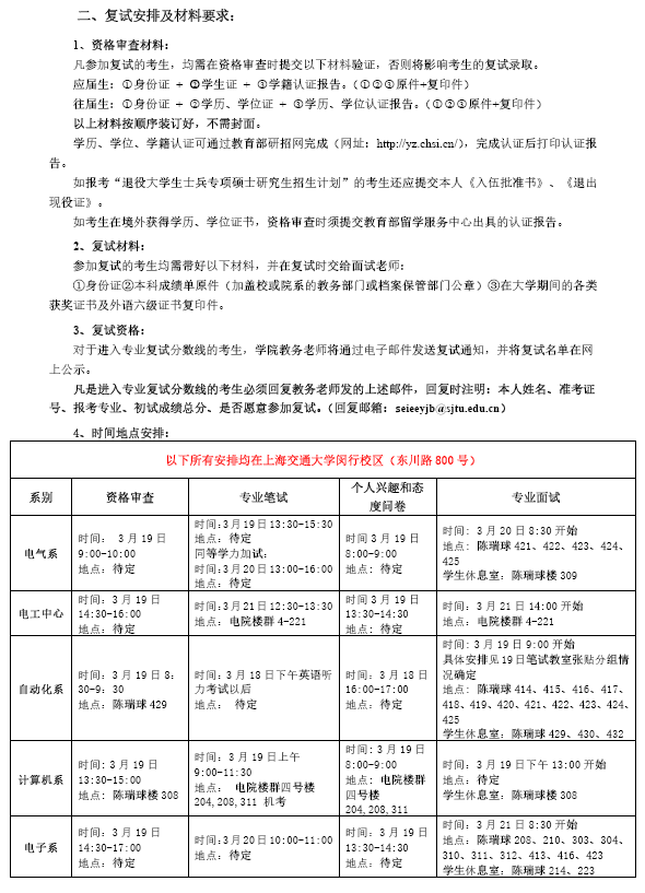 上海交通大学电子信息与电气工程学院2018年全日制硕士研究生统考招生复试办法