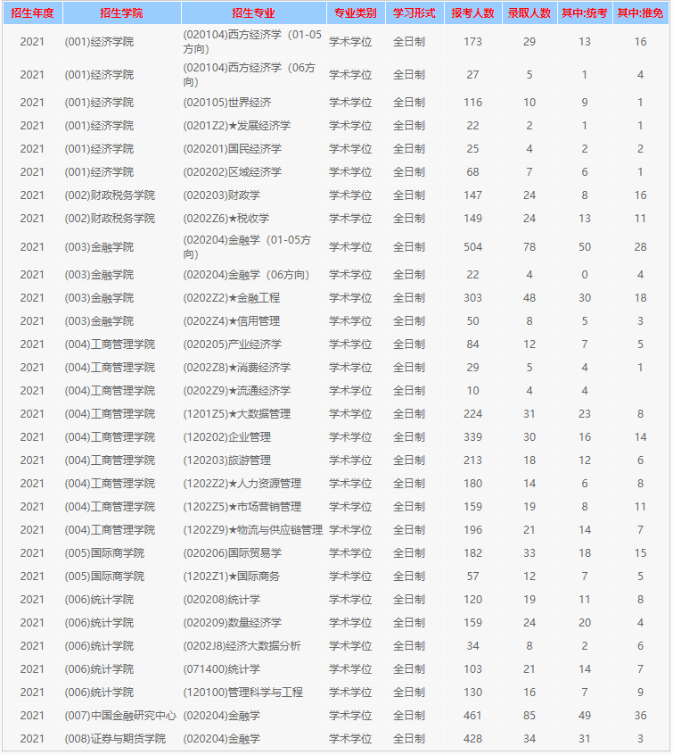 完整版请下载附件:西南财经大学2021年硕士研究生报录比