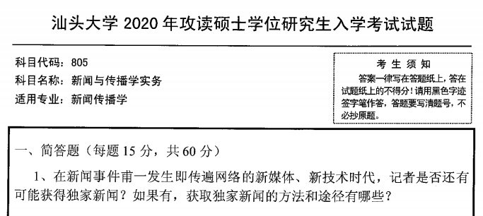 完整版请下载附件:2020年汕头大学805新闻与传播学实务考研真题(完整版)