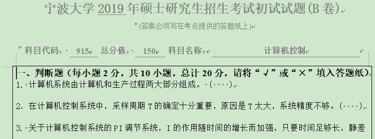 完整版请下载附件:2019年宁波大学915计算机控制(B卷)考研真题(完整版)
