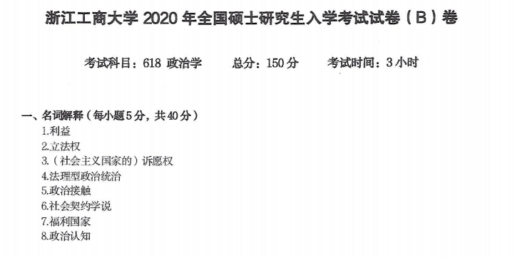 完整版请下载附件:2020年浙江工商大学618政治学考研真题(完整版)