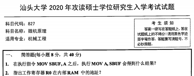 完整版请下载附件:2020年汕头大学827微机原理考研真题(完整版)