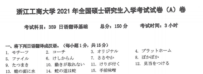 2021年浙江工商大学360法语翻译基础考研真题(完整版)