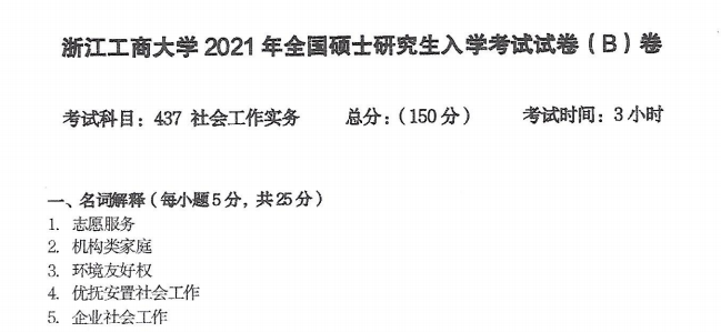 2021年浙江工商大学437社会工作实务考研真题(完整版)