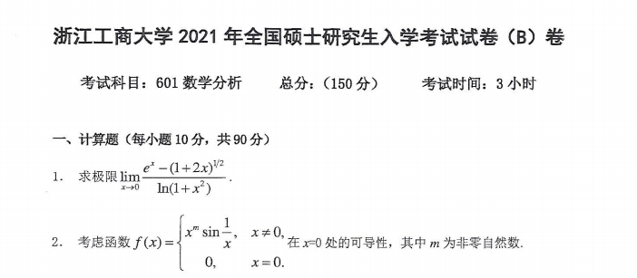 考研学习中,专业课占的分值较大。报考院校专业的考研专业课真题是专业课复习中必不可少的资料。聚创浙江工商大学考研小编为大家整理了2021年浙江工商大学601数学分析考研真题(完整版),并且可以提供浙江工商大学考研专业课辅导,希望更多考生能够考上理想的院校。