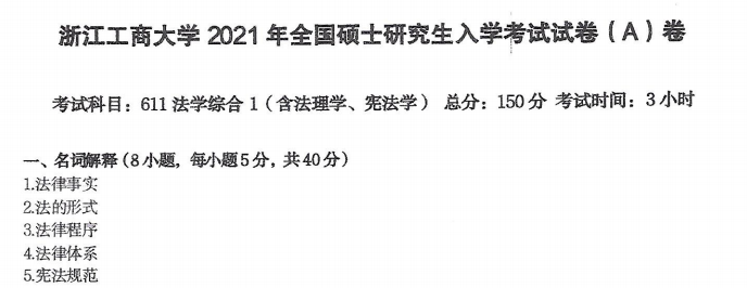 2021年浙江工商大学611法学综合1(含法理学、宪法学)考研真题(完整版)
