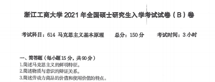 完整版请下载附件:2021年浙江工商大学614马克思主义基本原理考研真题(完整版)