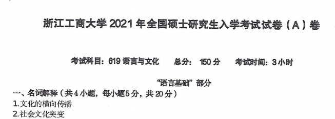 2021年浙江工商大学619语言与文化考研真题(完整版)