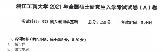 完整版请下载附件:2021年浙江工商大学629城乡规划学基础考研真题(完整版)