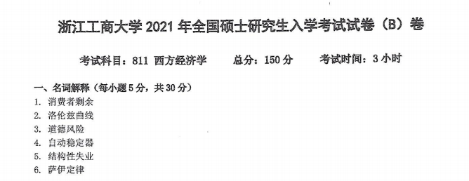2021年浙江工商大学811西方经济学考研真题(完整版)