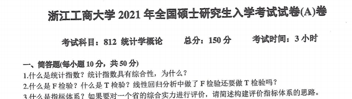 完整版请下载附件:2021年浙江工商大学812统计学概论考研真题(完整版)