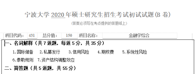 完整版请下载附件:2020年宁波大学431金融学综合考研真题(完整版)