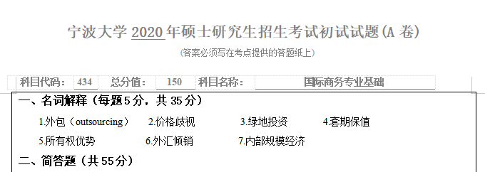 考研学习中,专业课占的分值较大。报考院校专业的考研专业课真题是专业课复习中必不可少的资料。聚创宁波大学考研小编为大家整理了2020年宁波大学434国际商务专业基础考研真题(完整版),并且可以提供宁波大学考研专业课辅导,希望更多考生能够考上理想的院校。