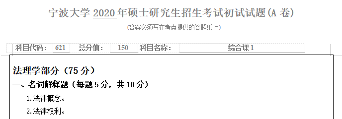 考研学习中,专业课占的分值较大。报考院校专业的考研专业课真题是专业课复习中必不可少的资料。聚创宁波大学考研小编为大家整理了2020年宁波大学621综合课1考研真题(完整版),并且可以提供宁波大学考研专业课辅导,希望更多考生能够考上理想的院校。